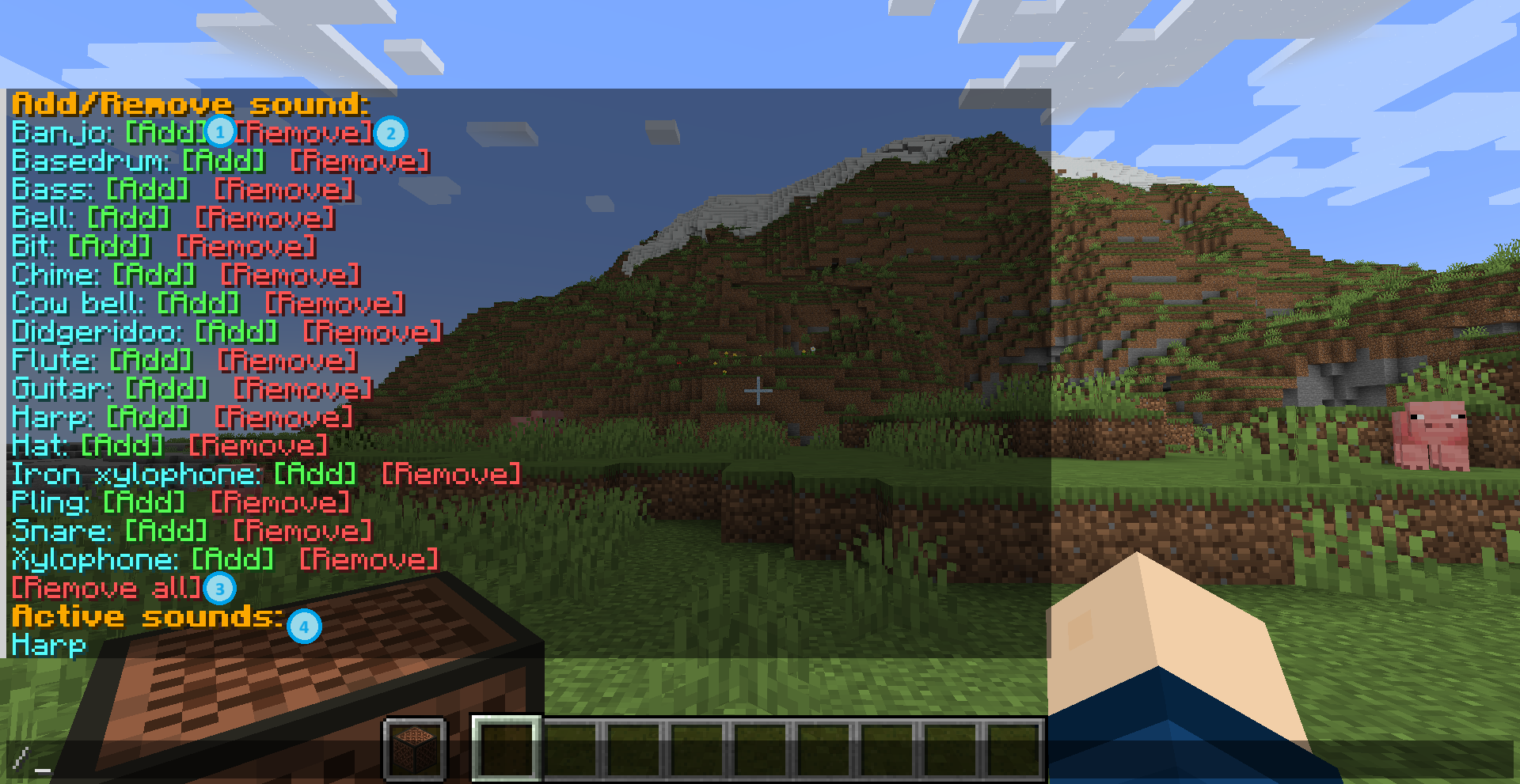 The default sound of a note block is a harp. However, you can set other instruments or mix several of them to make more catchy sounds. In order to do that, press a [command key] button (/